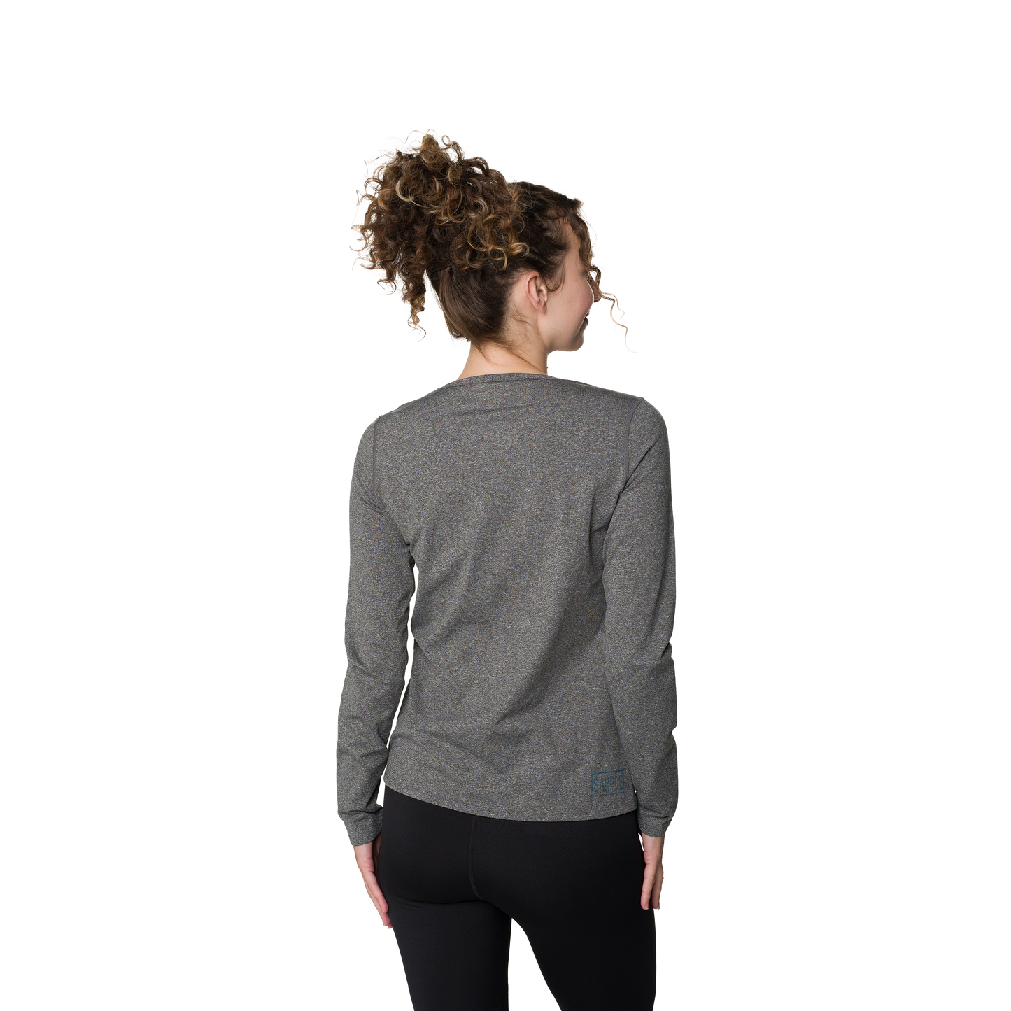 For over 30 years, Micro-Elite Chamois has been a top choice for technical base layers due to its blend of fibers with unique properties that provide consistent warmth, comfort, and dryness. Our women's long sleeve thermal top features a smooth exterior and soft interior for effortless layering and added warmth without extra bulk. The body-hugging design of this crew neck base layer allows for unrestricted movement.