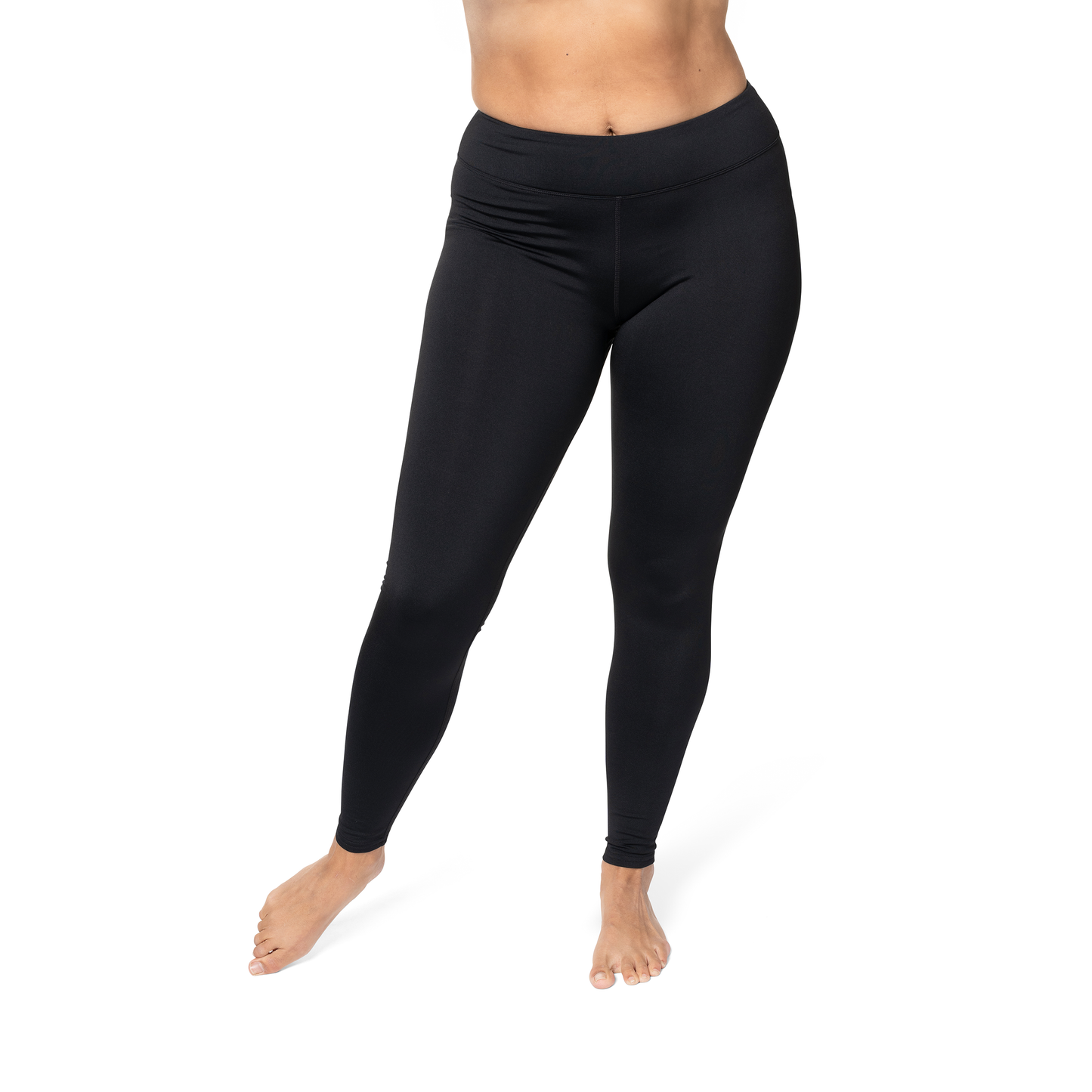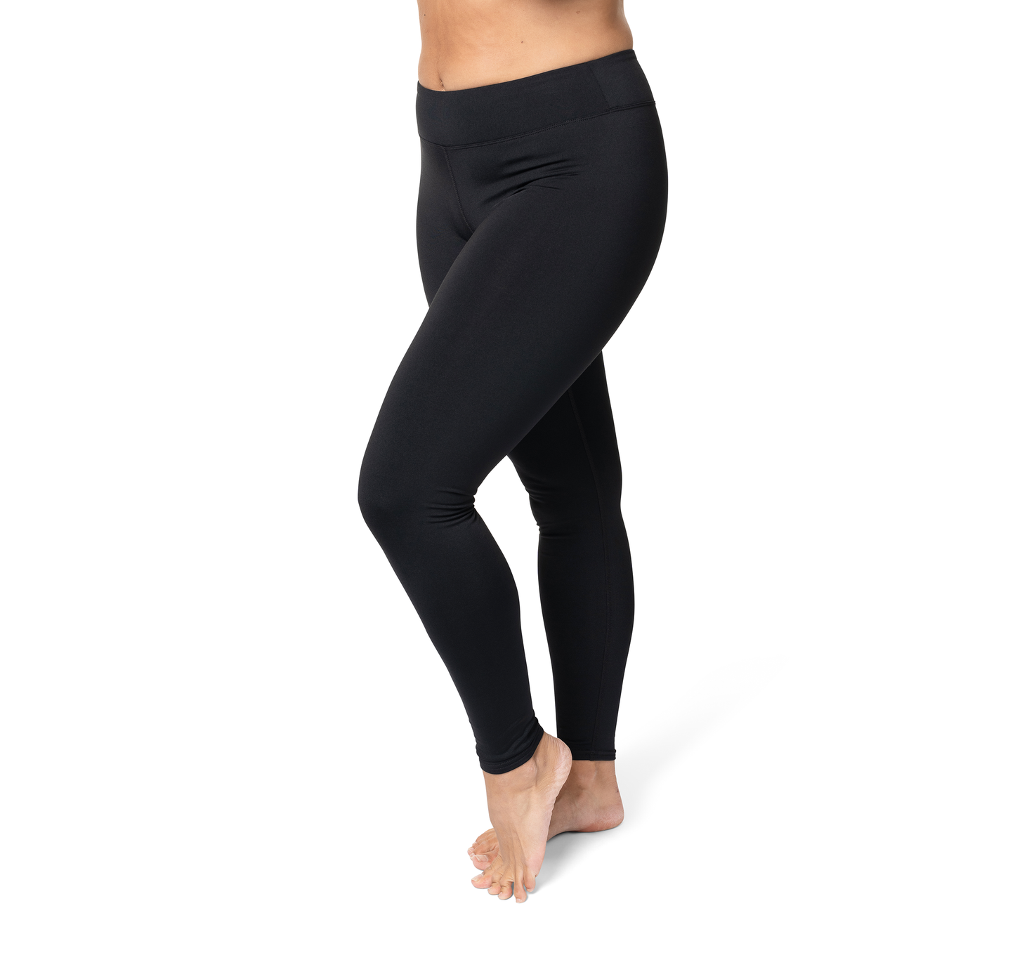 Black leggings worn by a person on a white background